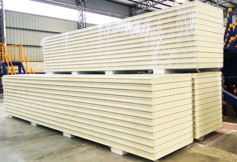 5、頂冷庫(kù)板安裝宜與墻板安裝交替進(jìn)行,墻板留出撤出施工設(shè)備的缺口;頂庫(kù)板安裝時(shí),與墻板搭接處的端頭鋼皮應(yīng)斷開(kāi)50mm防止“冷橋“跑冷;頂庫(kù)板每塊之間結(jié)合面上均勻打兩道發(fā)泡料,打料應(yīng)均勻連續(xù),鋼板內(nèi)外搭接處拉鉚釘固定,鉚釘間距以300mm為宜;